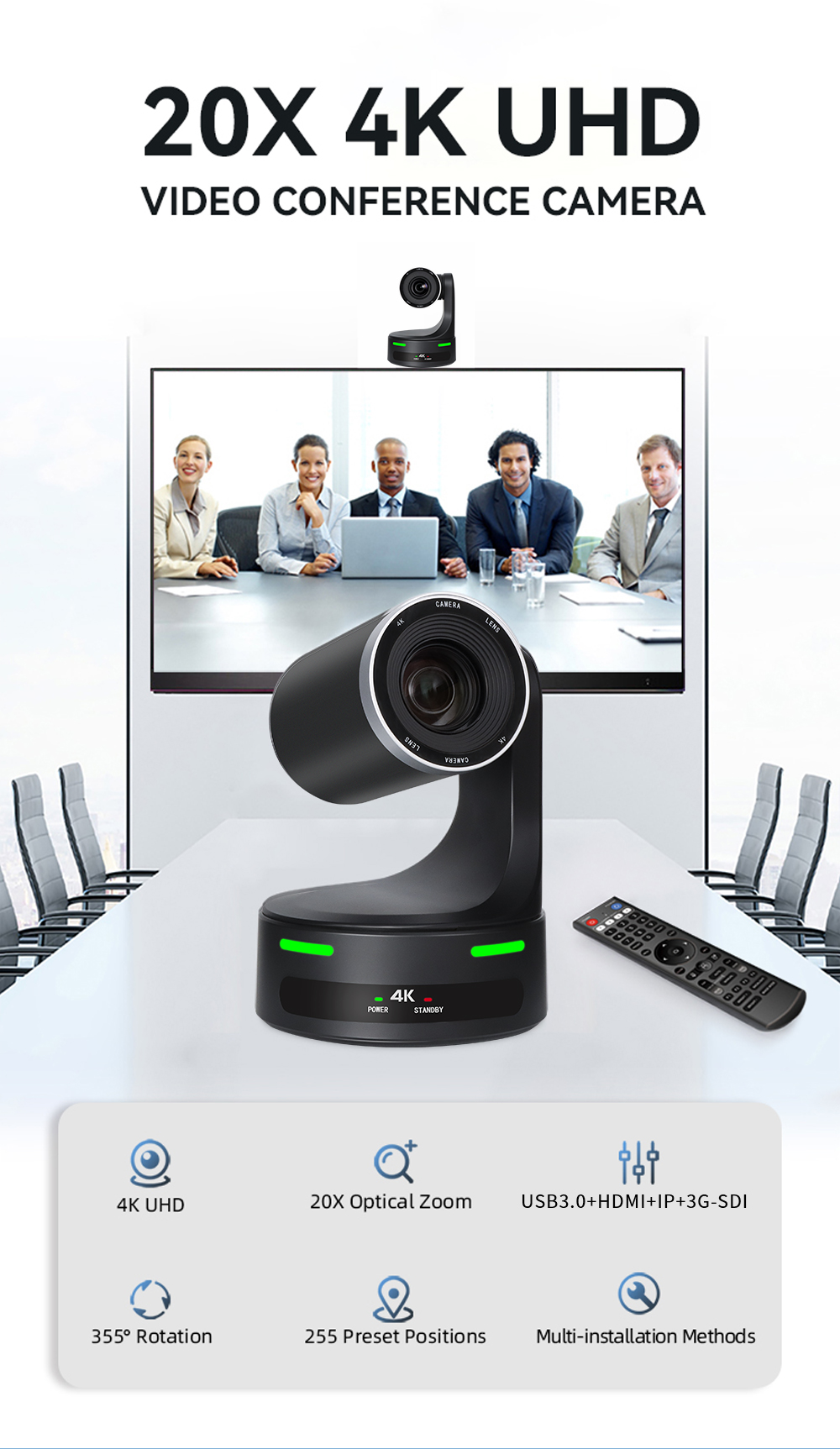 In addition to receiving signals from its dedicated remote control, it can also receive signals from users' infrared remote controls and transmit them to the video conferencing terminal through the VISCA IN port.