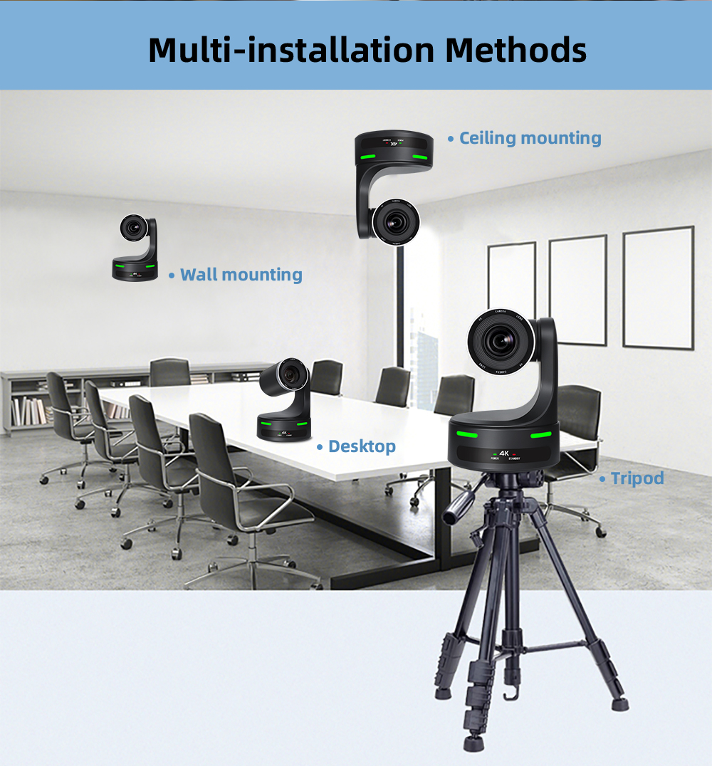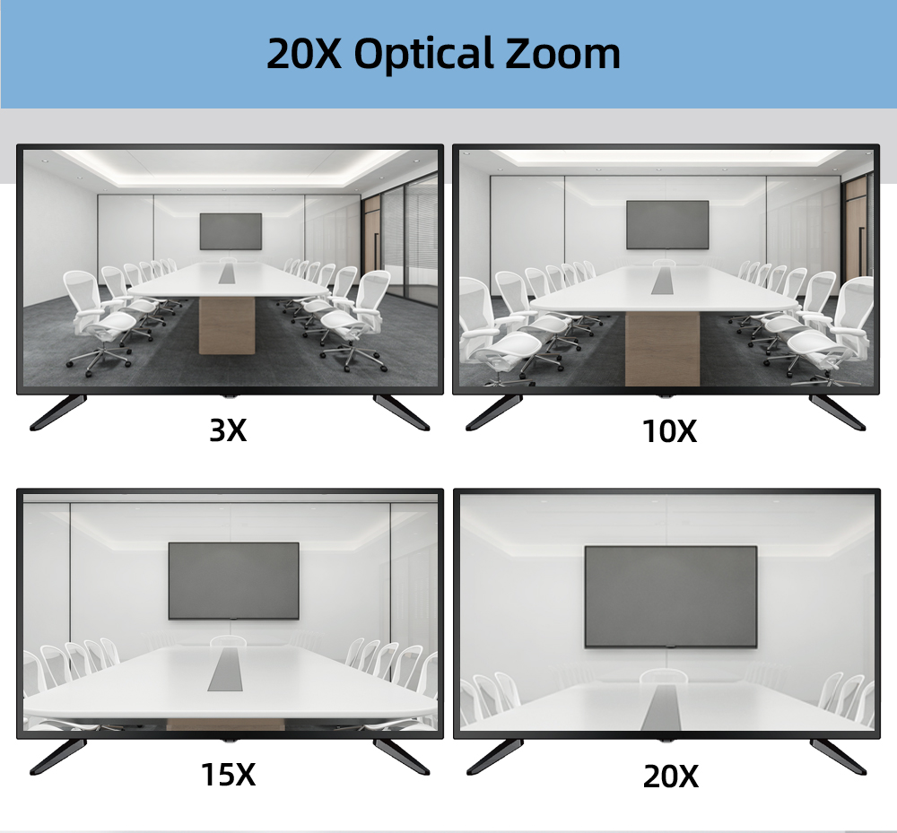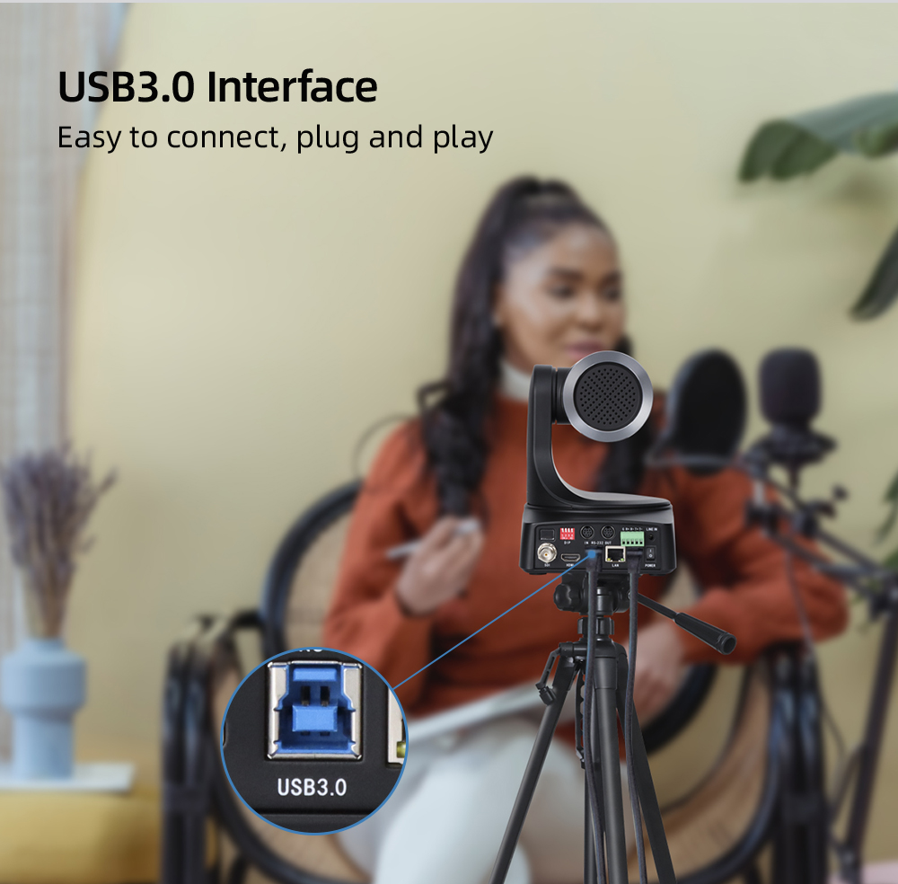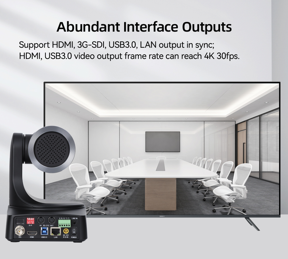 (*Note: With AI intelligent tracking and automatic framing enabled, USB3.0 supports 4K30 resolution output, HDMI+IP supports 1080p60 resolution output, and 3G-SDI has no video output. All three interfaces can output simultaneously.)
