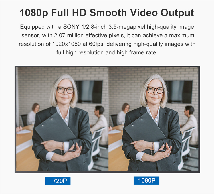Apply SONY 1/2.8” Progressive CMOS sensor, 2.07 Megapixels, can reach max.1920x1080 high resolution with frame rate up to 60fps.