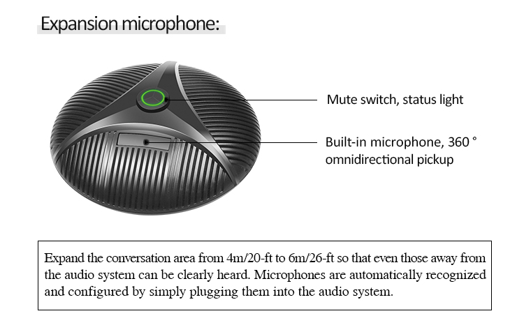 2 external microphones optional for connection makes the sound-pickup radius up to 6 meters |