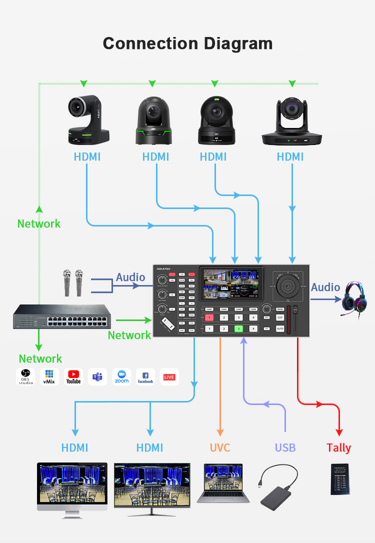 Video Switcher,HDMI Switcher,Live Streaming Switcher,PTZ Camera Switcher,Professional Video Switcher,Church Video Switcher,Education Video Switcher,Broadcast Video Switcher,4 Channel Switcher,Best Video Switcher,Live production switcher,Video mixer,PTZ controller,4 input video switcher,Esports video switcher