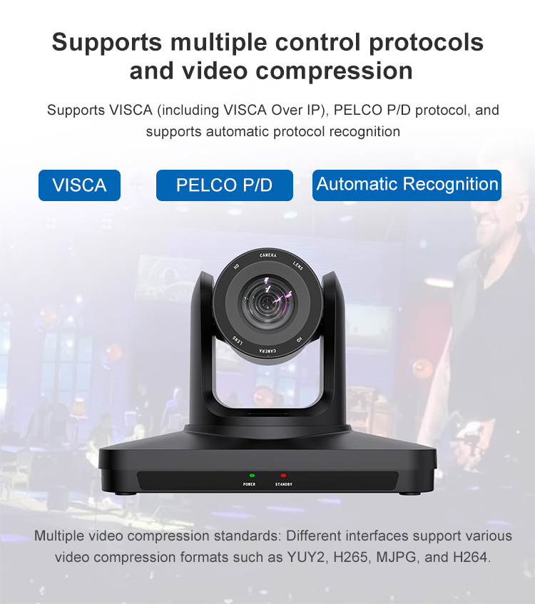 Support VISCA (including VISCA Over IP), PELCO P/D protocol, support automatic identification protocol.
