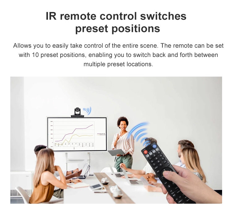 In addition to being able to receive its own dedicated remote control signal, it can also receive the user's infrared remote control signal and send it to the video conference terminal through the VISCA IN port.