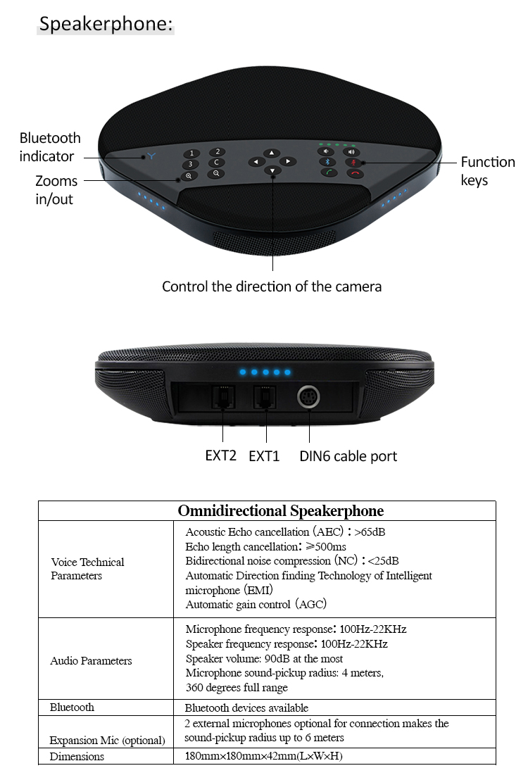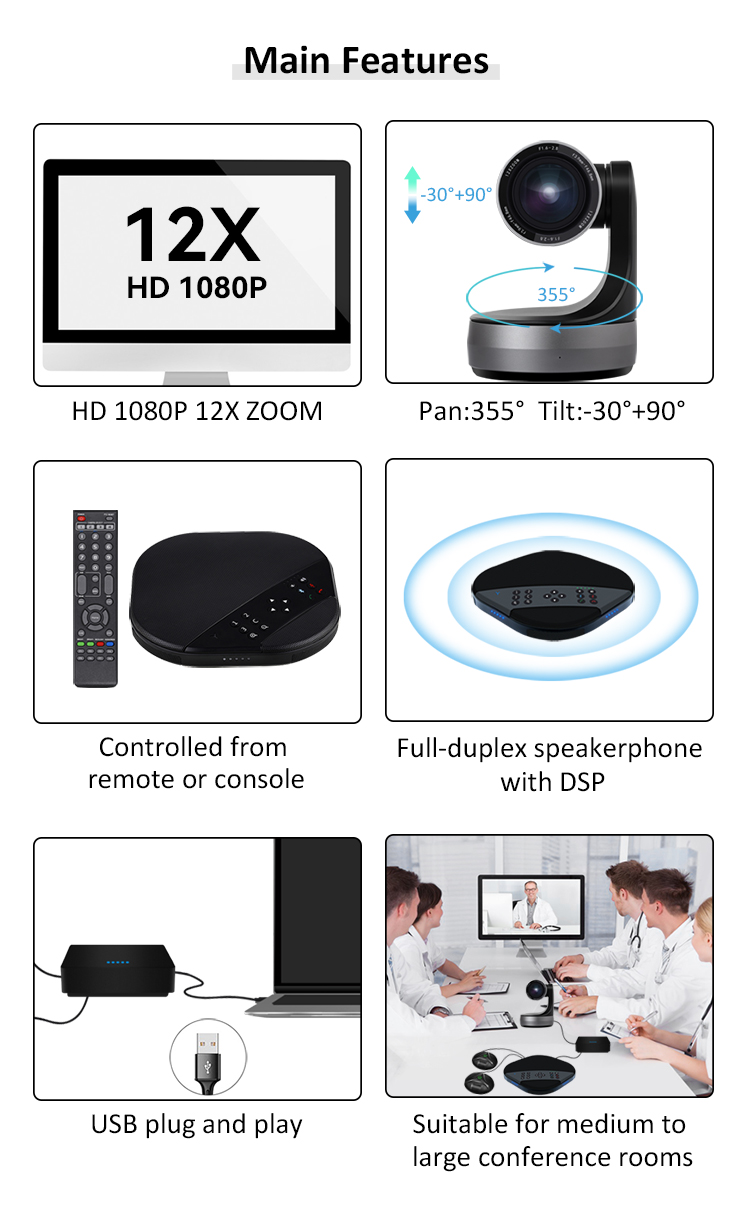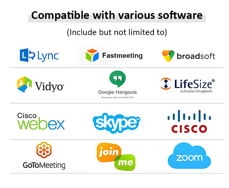 Support Windows, Android, iOS and Linux Drive-free automatic recognition of cameras, microphones and speakers Compatible with Zoom, Lynch, Vidyo, Skype for business and etc. |