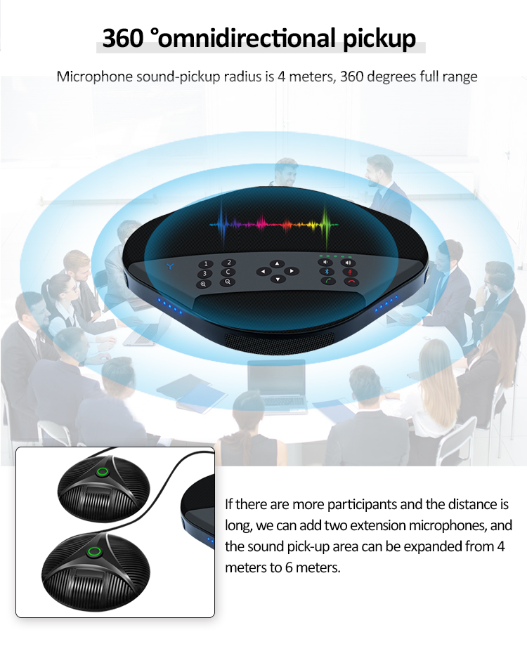 2 external microphones optional for connection makes the sound-pickup radius up to 6 meters |